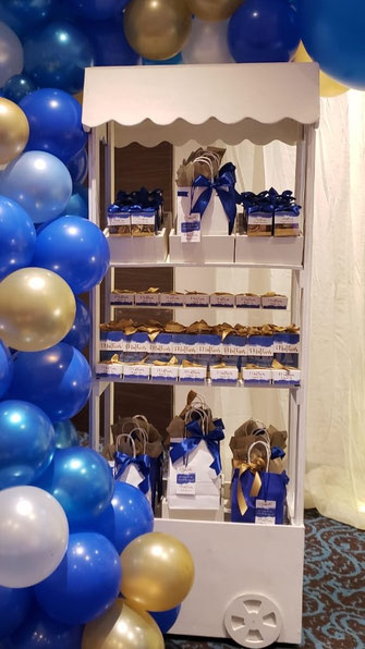 Tenemos carritos para recordatorios, colgantes para las puertas, manteles para las mesas del cuarto y mucho más para decorar el cuarto del hospital.